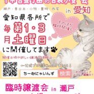 現在のところ、《瀬戸会場・豊明会場・春日井会場・小牧会場・西尾会場》のうち、3会場にて保護猫の譲渡会を定期開催(第1土曜日&第3土曜日)致しておりますが、愛知・岐阜・三重を中心にした中部地方全域にその活動エリアを拡大中です!