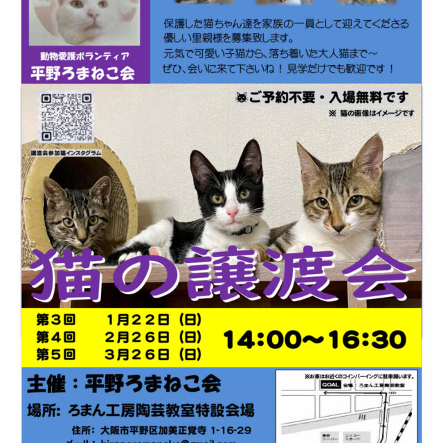 「第4回平野ろまねこ譲渡会」を開催致します。