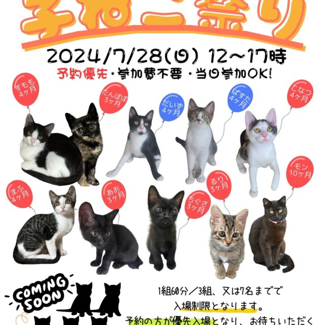 会いたい猫さんが決まっている方やご来場時間が決まっている方は優先的にご案内をさせていただきますので、ホームページよりご予...