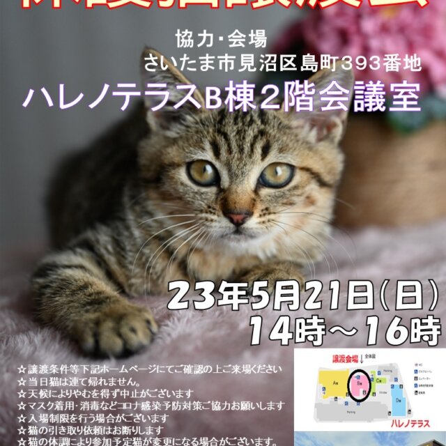【さいたま市】5/21(日)ハレノテラス保護猫譲渡会