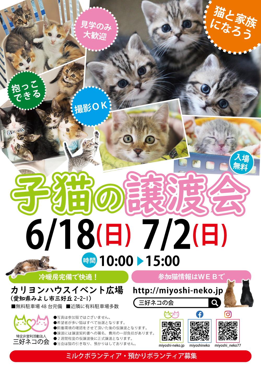 子猫まつり(子猫20匹・中猫2匹)譲渡会/愛知県みよし市