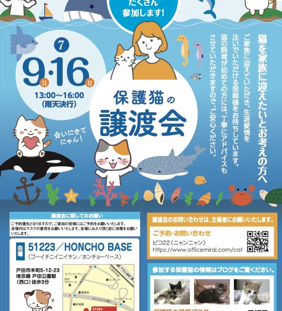 ねこの病院と保護ねこルーム ぽのいえで、3回目譲渡会を開催いたします。