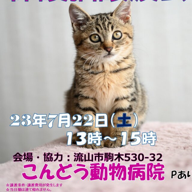 【流山市】7/22(土)こんどう動物病院保護猫譲渡会