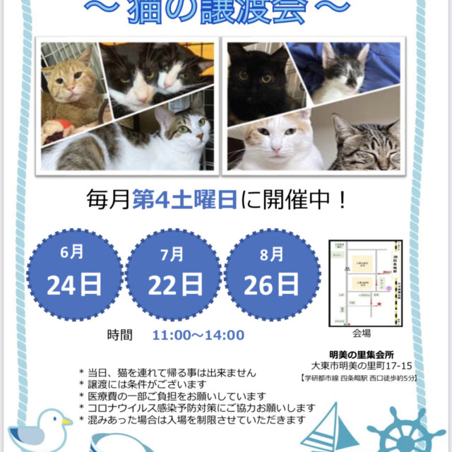 きちんと感染対策をとった上で譲渡会を開催させていただきますので、皆さん猫ちゃんたちに逢いにいらしてくださいね