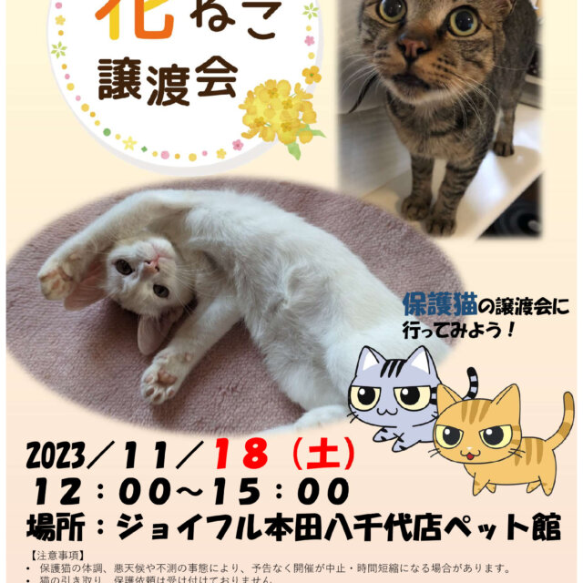 花ねこ譲渡会(ジョイフルホンダ八千代店ペット館)