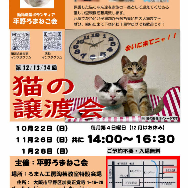 「第12回平野ろまねこ譲渡会」を開催致します。