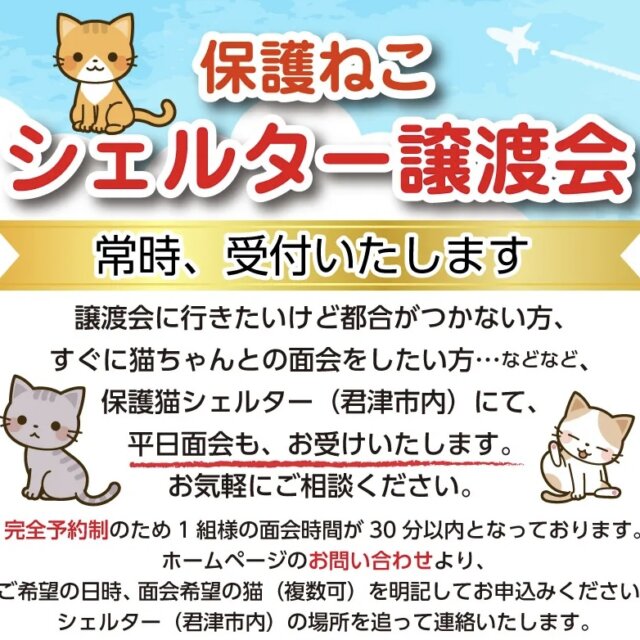 保護猫ハウスの譲渡会随時受付しています。お気軽にご連絡ください。