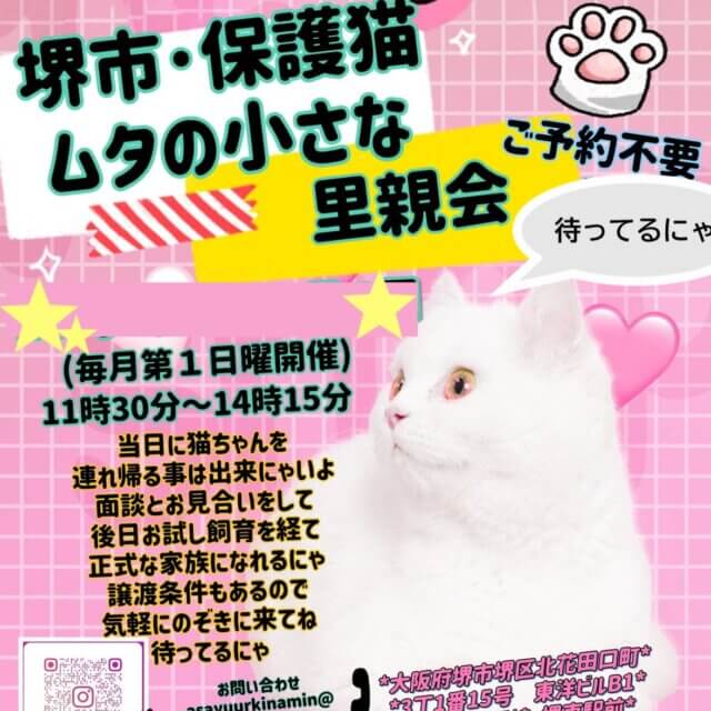 主に大阪府堺市で活動しております「猫の事務所」です。「ムタの小さな里親会」を開催しております。