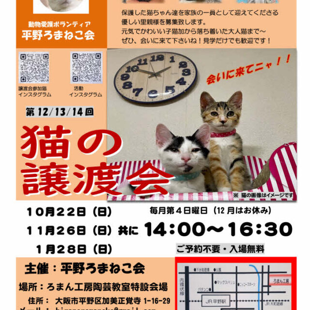 「第13回平野ろまねこ譲渡会」を開催致します。