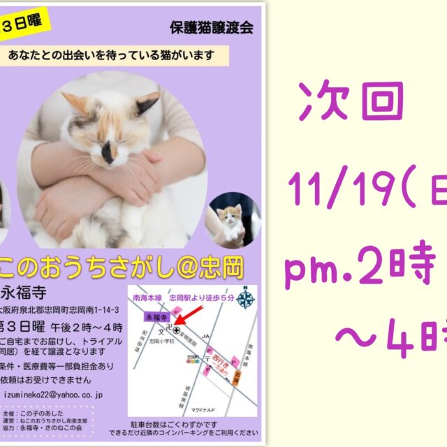 ★参加予定の猫さんは、里親会の前に里親さまが決定する場合や、体調により不参加となる場合があります。