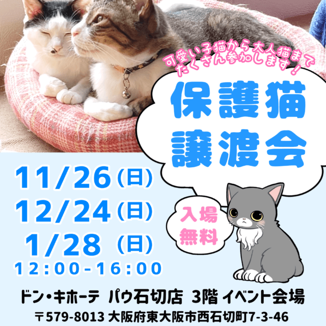 あくあ保護猫シェルターによる、猫の譲渡会です。