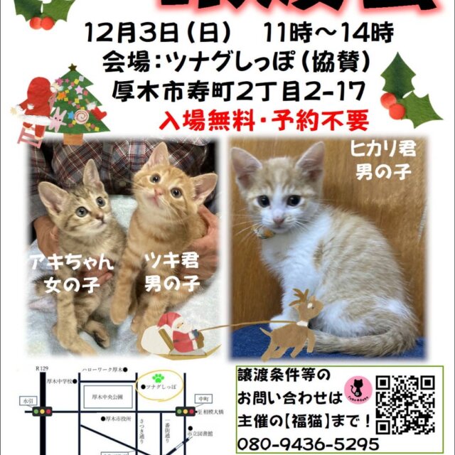 生後2ヶ月の子3頭と6ヶ月の茶トラくん参加します