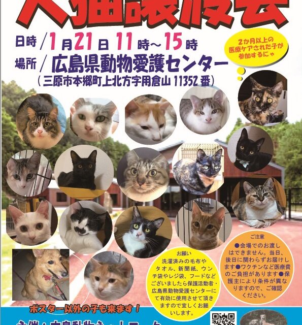 広島県内で保護された犬猫の譲渡会です。