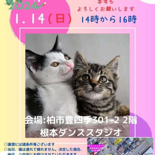 【柏市】1/14 (日) 根本ダンススタジオ保護猫譲渡会