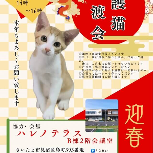 【さいたま市】1/21(日)ハレノテラス保護猫譲渡会