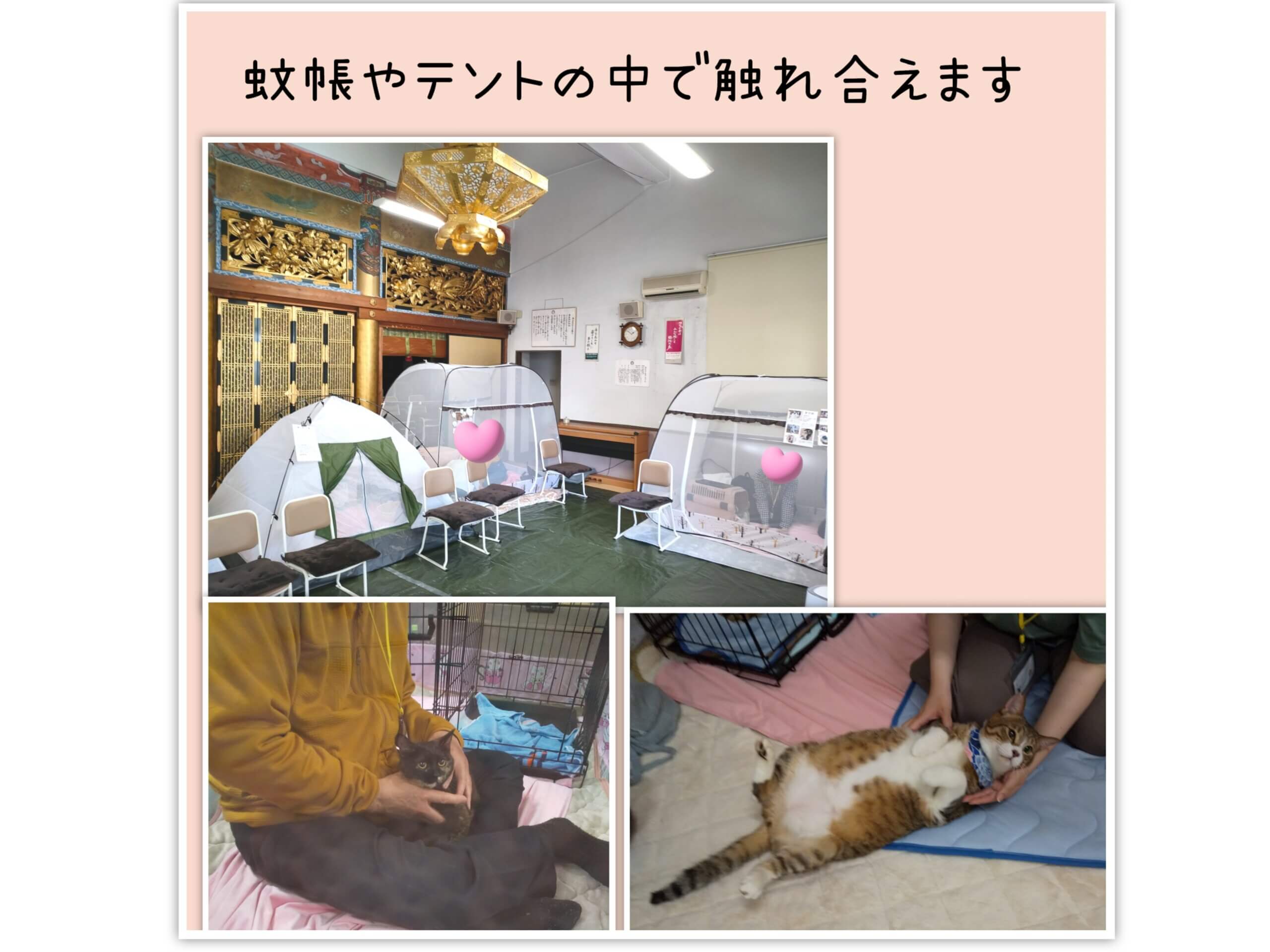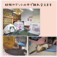 保護猫と蚊帳やテントの中で触れ合える里親会(譲渡会)