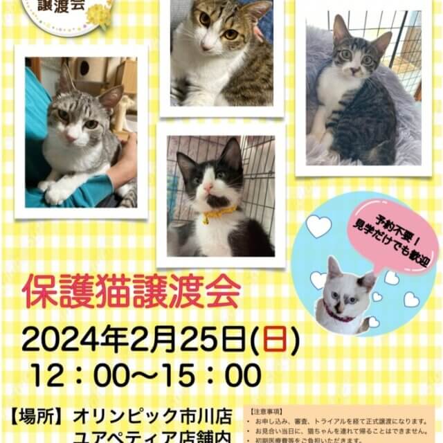 花ねこ譲渡会は、個人保護主さんが保護して大切にお世話した猫の「本当のお家」を探す譲渡会です。是非一度遊びに来てください。