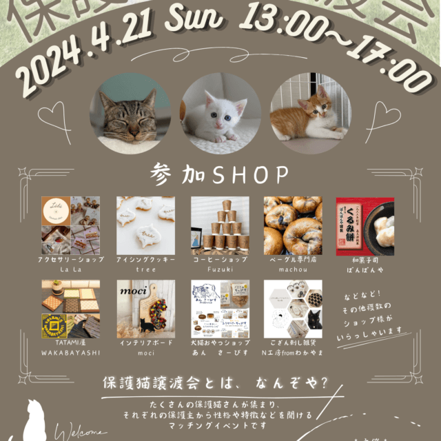※会場内は飲食可ですが、猫ちゃんの近くでは飲食しないようお願い致します。
