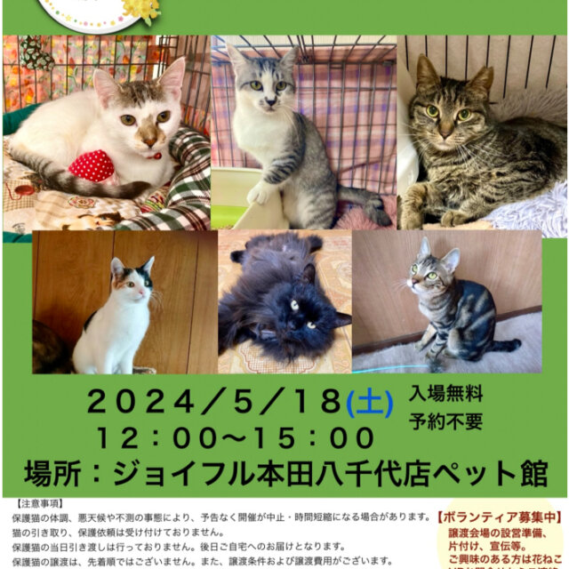花ねこ譲渡会は、個人保護主さんが保護して大切にお世話した猫の「本当のお家」を探す譲渡会です。是非一度遊びに来てください。