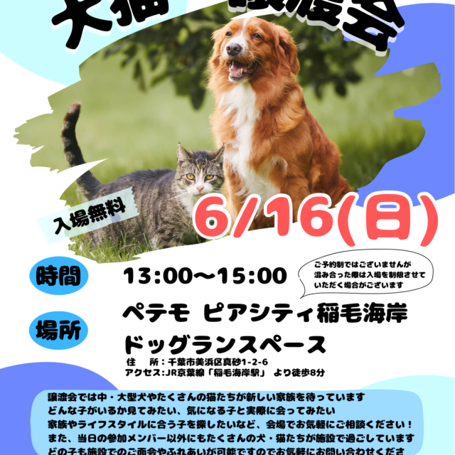 里親募集中の中・大型犬数頭と、猫十数匹が参加予定です!