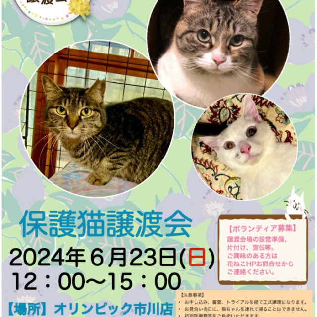 花ねこ譲渡会は、個人保護主さんが保護して大切にお世話した猫の「本当のお家」を探す譲渡会です。是非一度遊びに来てください。