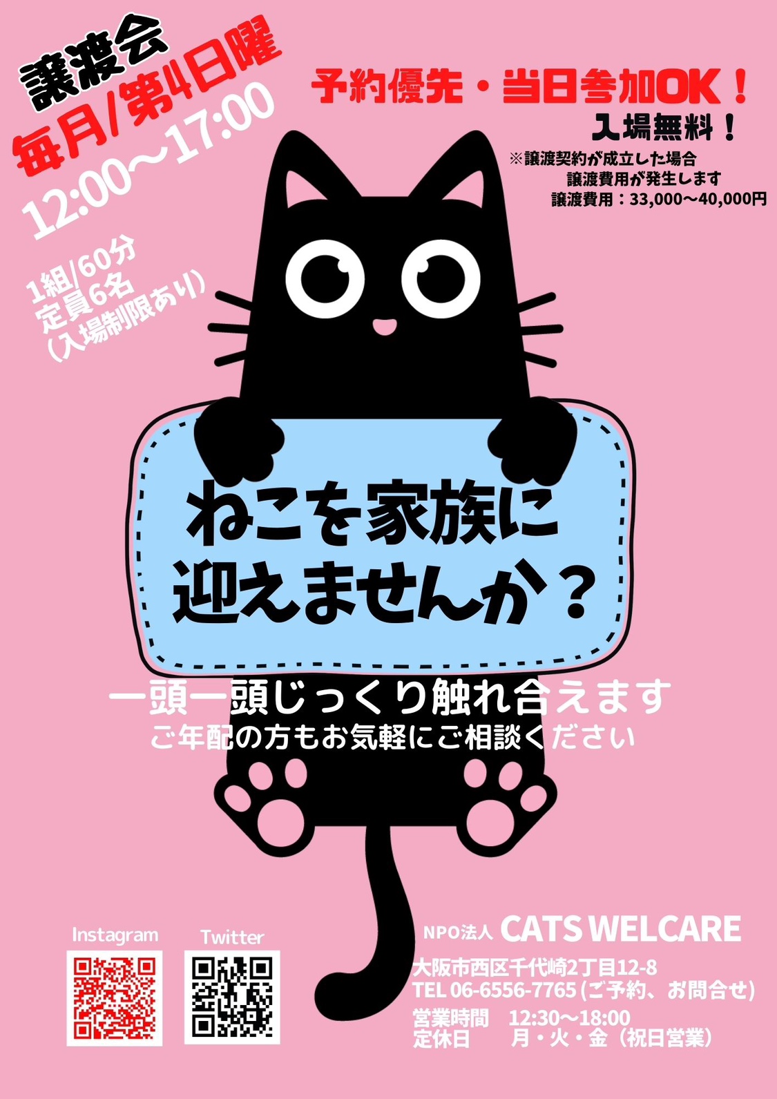 ※当日、猫を連れて帰ることはできません。