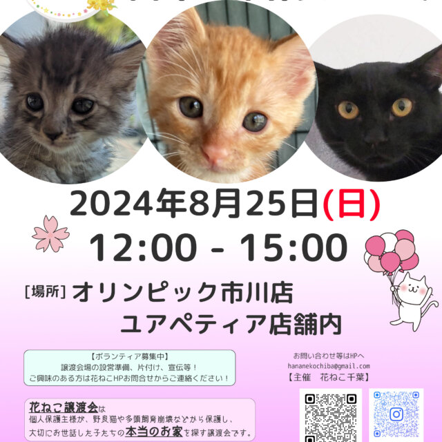 花ねこ譲渡会は、個人保護主さんが保護して大切にお世話した猫の「本当のお家」を探す譲渡会です。