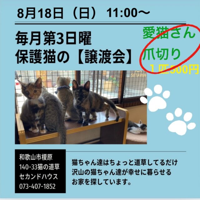 保護犬・保護猫【譲渡会】&愛猫さんの爪切り
