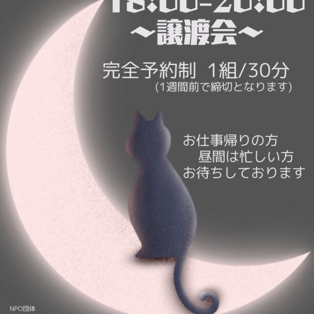 毎月第1日曜の11時~13時と14時~16時の2部制にて「保護ねこの家 譲渡会」を開催しています。