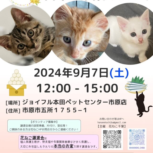 花ねこ譲渡会は、個人保護主さんが保護して大切にお世話した猫の「本当のお家」を探す譲渡会です。