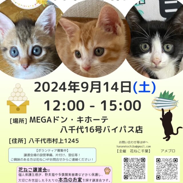花ねこ譲渡会は、個人保護主さんが保護して大切にお世話した猫の「本当のお家」を探す譲渡会です。