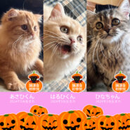 ちびちび子猫がハロウィン仮装でお出迎えします。