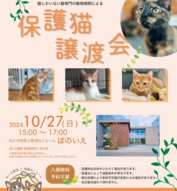 【さいたま市西区】10/27(日)猫専門病院「ぽのいえ」保護猫譲渡会