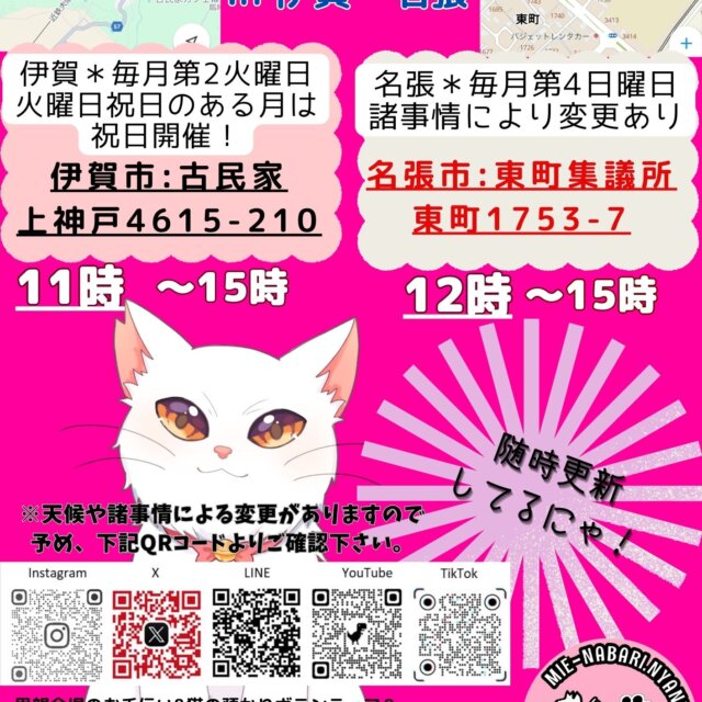 猫の里親会in名張❣ 募集番号:56501 掲載日:2024/10/27 開催日 2026/03/22 時間 12時から15時 場所 三重県名張市東町1753-7 会場名 東町集議所 内容 沢山の保護猫たちがエントリー❣ フリマも盛りだくさんで皆様のご来場をお待ちしております! 開催日: 2026/03/22 時間: 12時から15時 場所: 三重県名張市東町1753-7 会場名: 東町集議所 画像2枚目: 画像3枚目: 画像4枚目: 画像5枚目: スポンサーリンク この譲渡会情報をSNSで広めよう! Twitterでシェア Facebookでシェア はてなブックマーク LINEで教える 投稿者: Warning: Undefined variable $userID in /home/petwa/pochi-tama.net/public_html/wp-content/themes/pet/single-joutokai.php on line 150 にゃにゃ倶楽部 この投稿者の情報を見る