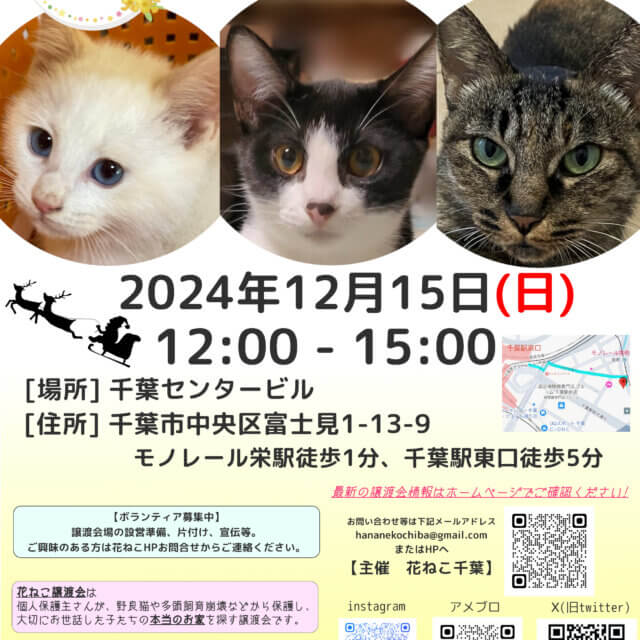 花ねこ譲渡会は、個人保護主さんが保護して大切にお世話した猫の「本当のお家」を探す譲渡会です。