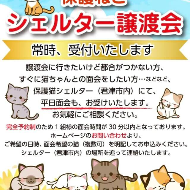 保護 猫ハウスの譲渡会随時受付しています。お気軽にご連絡ください。