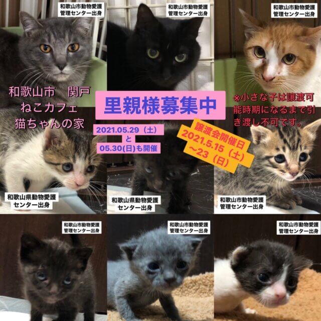 譲渡会の猫ちゃん達は、和歌山県動物愛護センターと和歌山市動物愛護管理センター出身の猫ちゃん達です(^^)