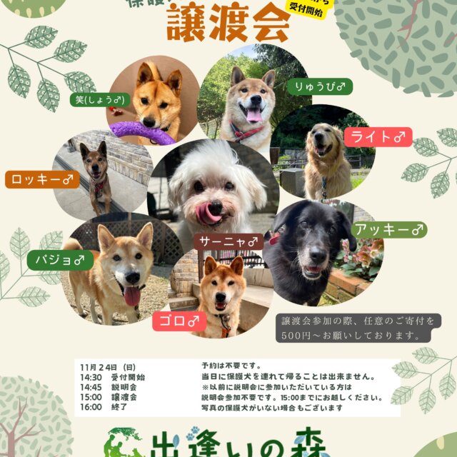 参加犬や譲渡条件、会場へのアクセスなどの詳細は、「出逢いの森」ホームページをご覧ください。