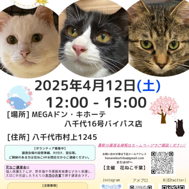 花ねこ譲渡会は、個人保護主さんが保護して大切にお世話した猫の「本当のお家」を探す譲渡会です。