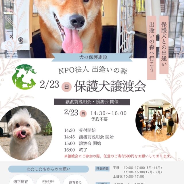 出逢いの森の犬たちの譲渡会を開催します!