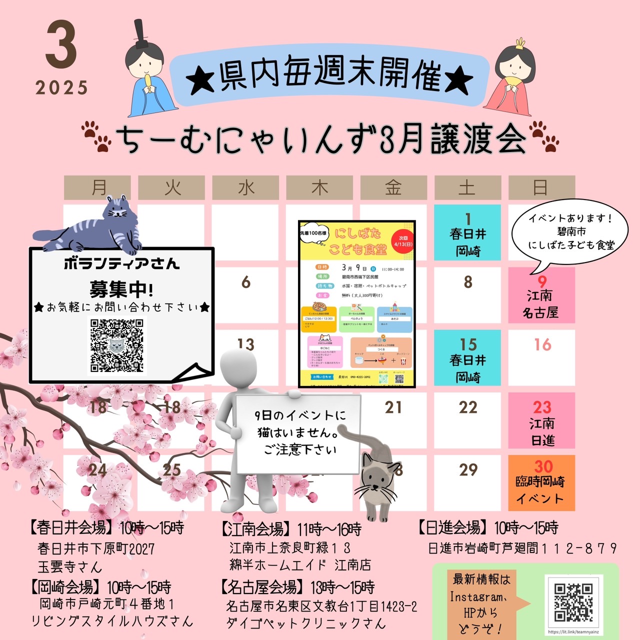 【in岡崎市☆保護猫達の『ひニャ祭り!』☆2025年3月1日(土)~ 非営利団体「ちーむ にゃいんず」】