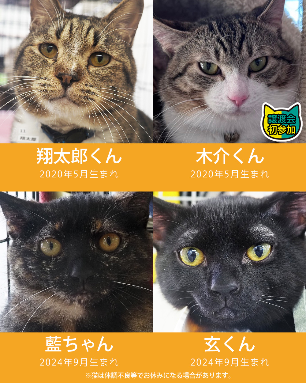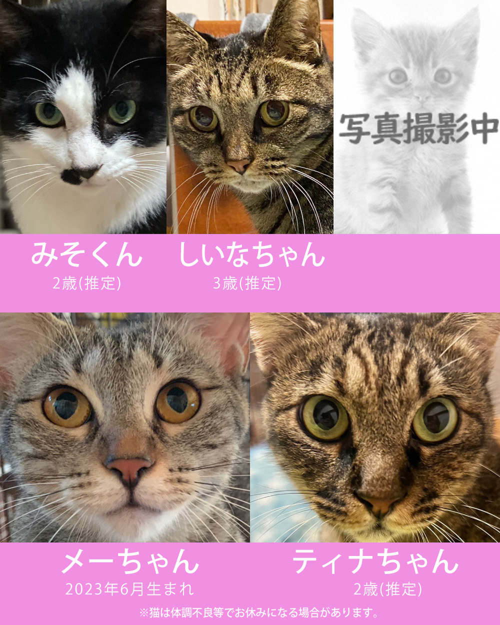 ・体調不良等で不参加になる猫もございます。