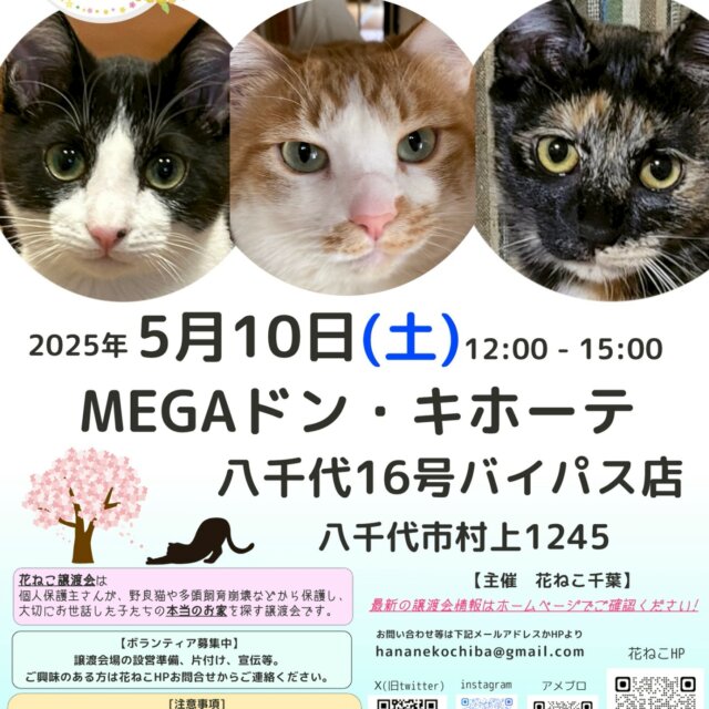 花ねこ譲渡会は、個人保護主さんが保護して大切にお世話した猫の「本当のお家」を探す譲渡会です。是非一度遊びに来てください。