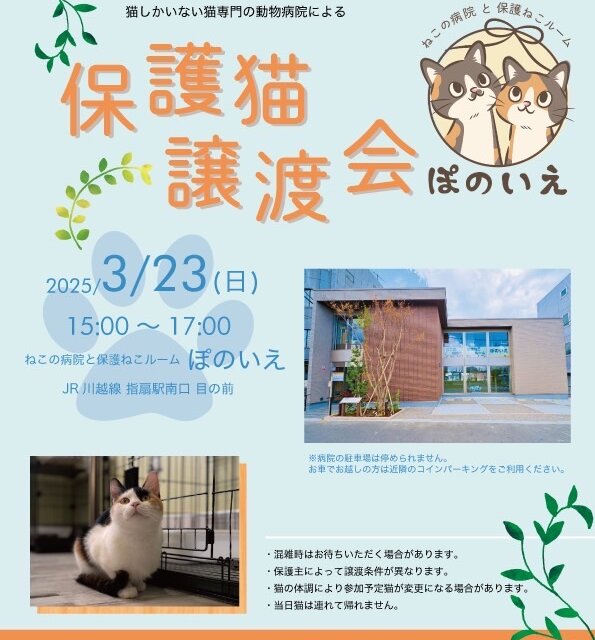 【さいたま市西区】3/23(日)猫専門病院「ぽのいえ」保護猫譲渡会