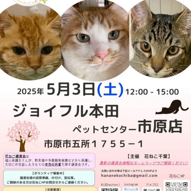 花ねこ譲渡会は、個人保護主さんが保護して大切にお世話した猫の「本当のお家」を探す譲渡会です。是非一度遊びに来てください。