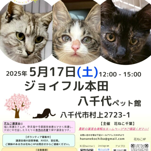 花ねこ譲渡会は、個人保護主さんが保護して大切にお世話した猫の「本当のお家」を探す譲渡会です。是非一度遊びに来てください。