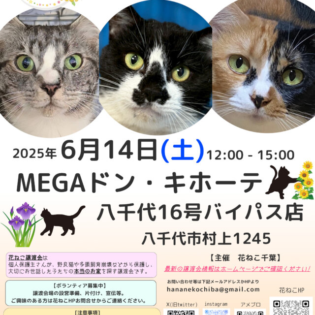 花ねこ譲渡会は、個人保護主さんが保護して大切にお世話した猫の「本当のお家」を探す譲渡会です。是非一度遊びに来てください。