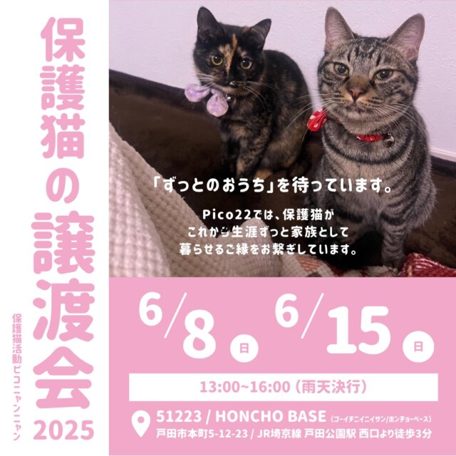 参加する保護猫の情報は、以下のPico22保護猫ブログをご覧ください。