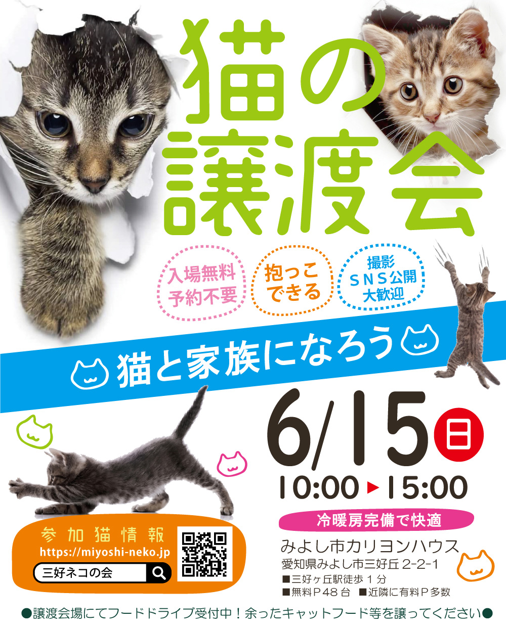 ※子猫のお見合いは譲渡会のみとなります、予約はできませんのでご理解ください。