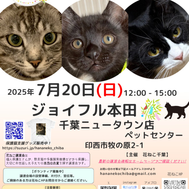 花ねこ譲渡会は、個人保護主さんが保護して大切にお世話した猫の「本当のお家」を探す譲渡会です。